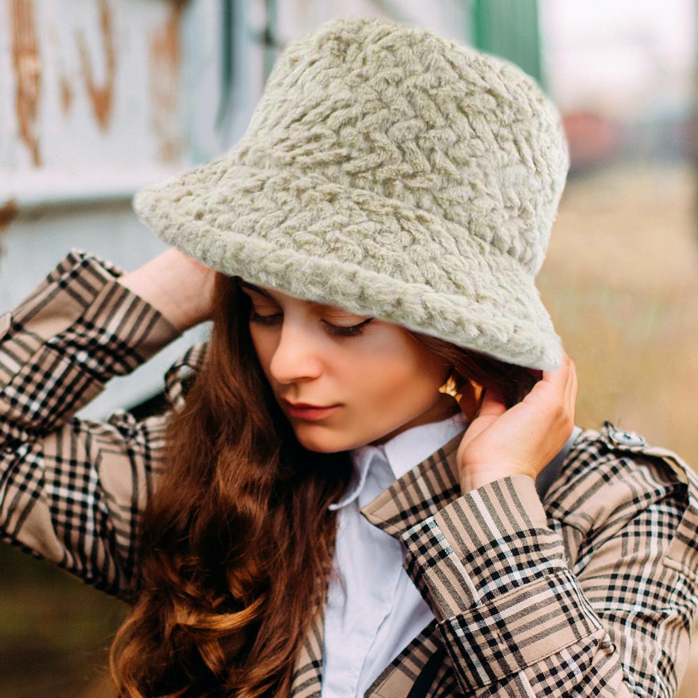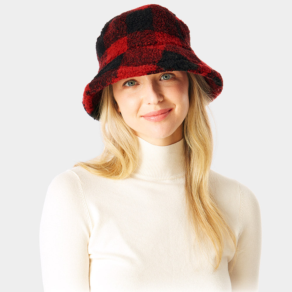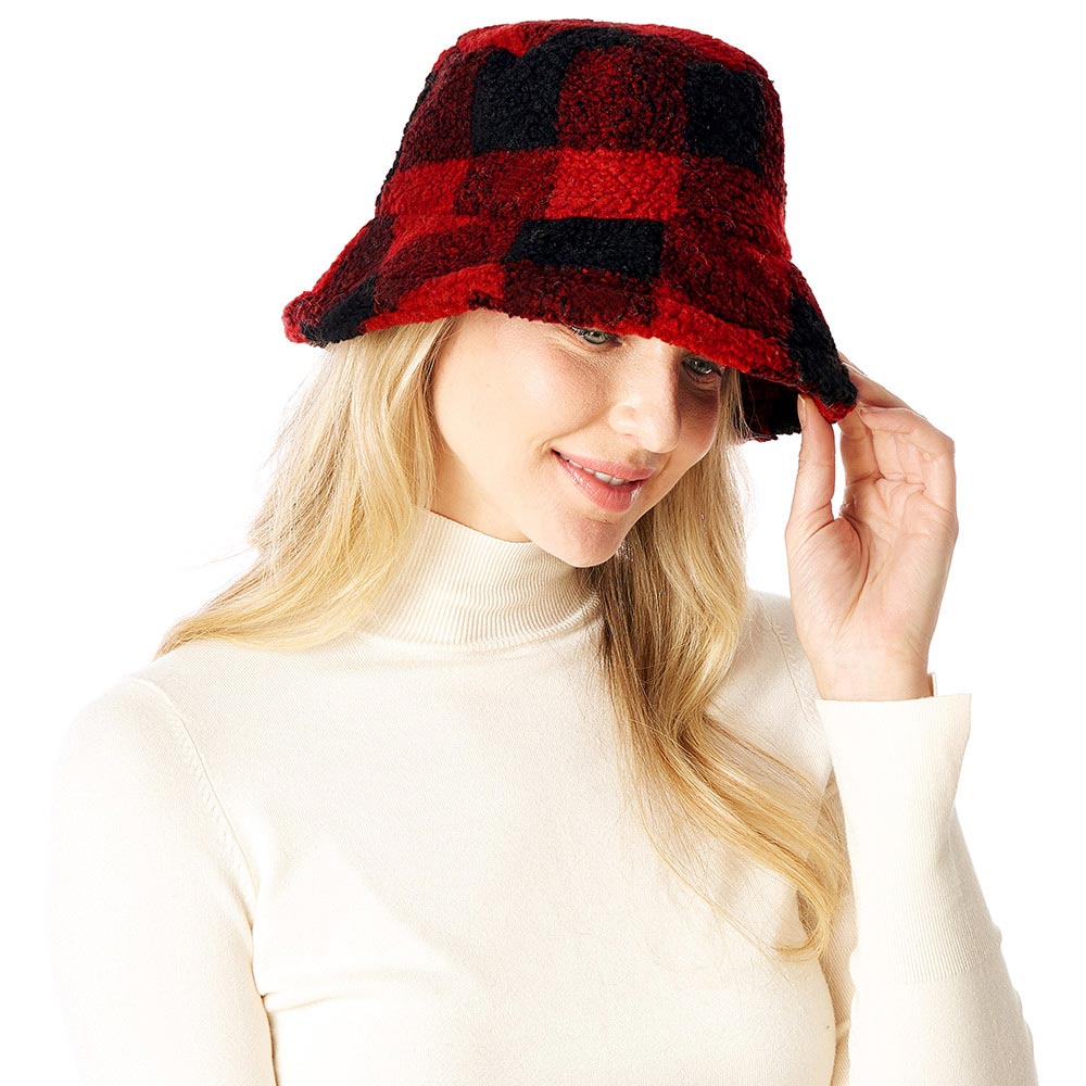 Patterned Faux Fur Solid Bucket Hat (Available in Red Only)