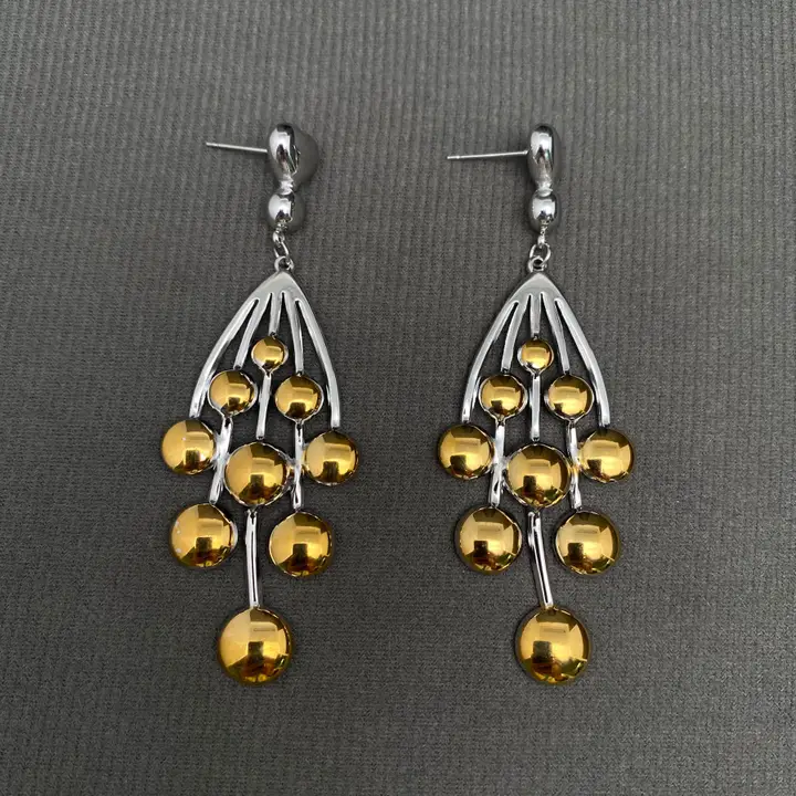 Silver and Gold Beaded Hoop Earrings (waterproof)