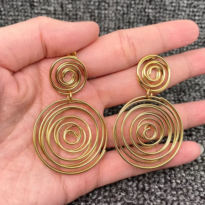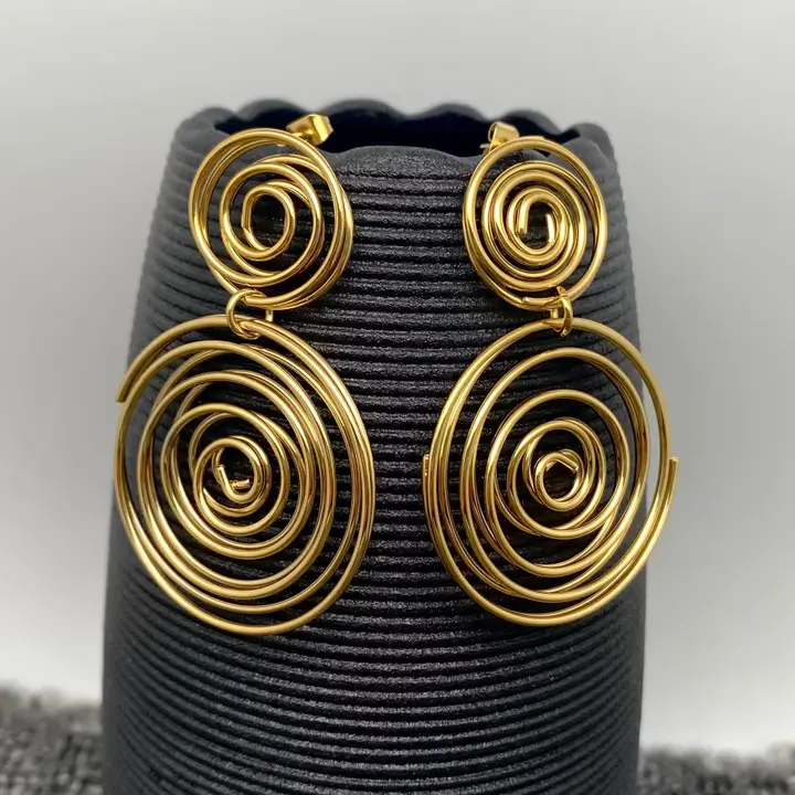 Round Hammer Textured Spiral 18K Gold Plated Earrings