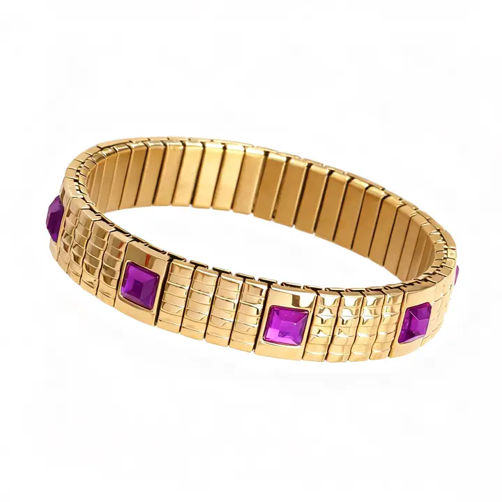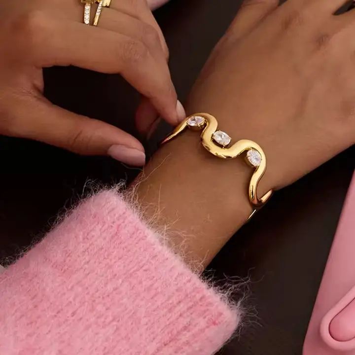 Bold Gold Wave Cz Cuff Bracelet Waterproof