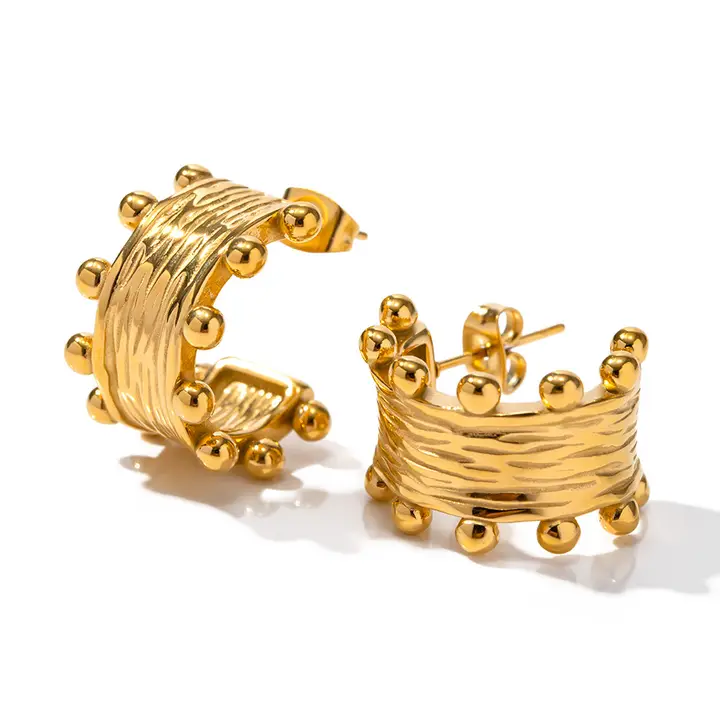 Silver and Gold Beaded Hoop Earrings (waterproof)