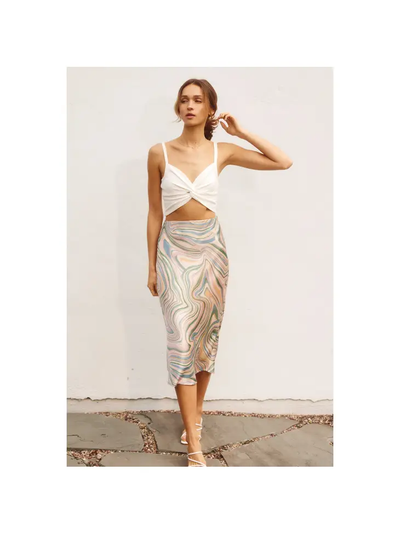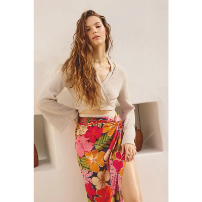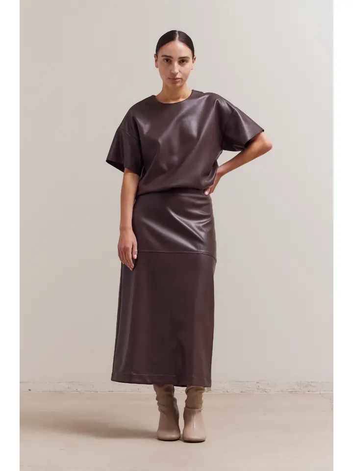 Ankle Length Midi Pu Wrap Skirt with Tie Closure