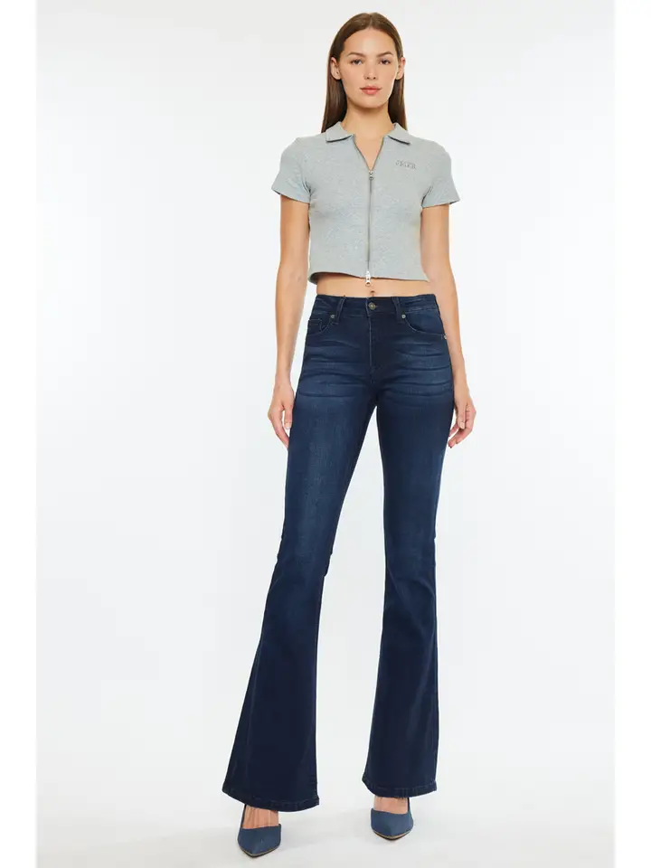 The Rayne Mid Rise Flare Jeans offer a refined silhouette with their dark wash and elegant, clean flare design. Crafted from super stretch denim, they provide exceptional comfort and flexibility without compromising on structure. Featuring a mid rise fit that flatters the waist and a polished zip fly closure, these jeans maintain a sophisticated, non-distressed look suitable for both casual and more dressed-up occasions. Ideal for those seeking timeless style with a modern touch, the Rayne jeans combine classic denim craftsmanship with contemporary comfort.
