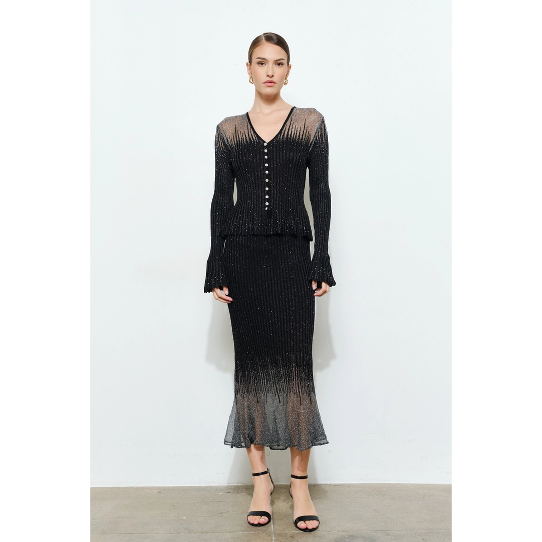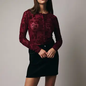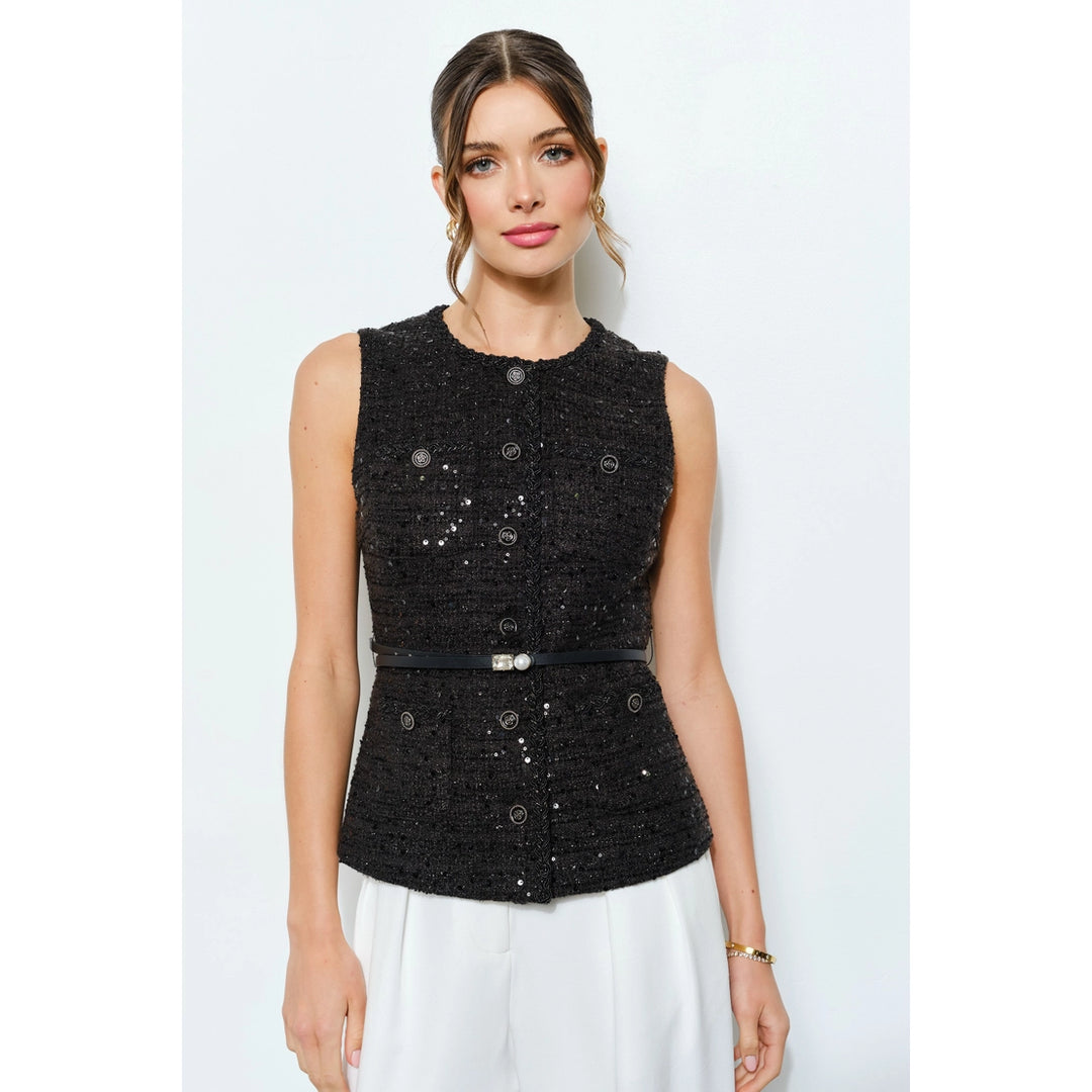 Sequin Cuff Accent Boat Neck Satin Blouse