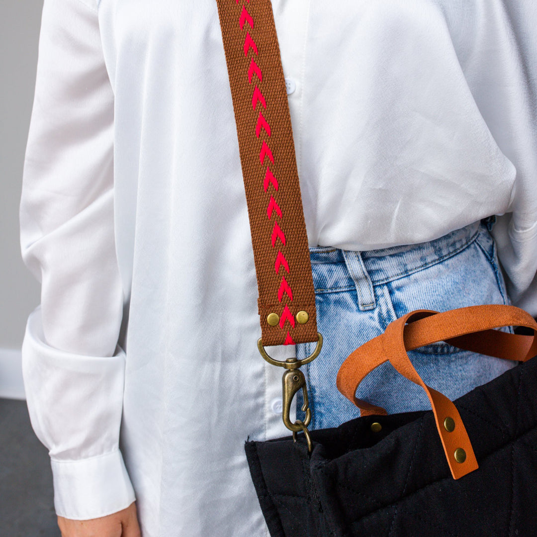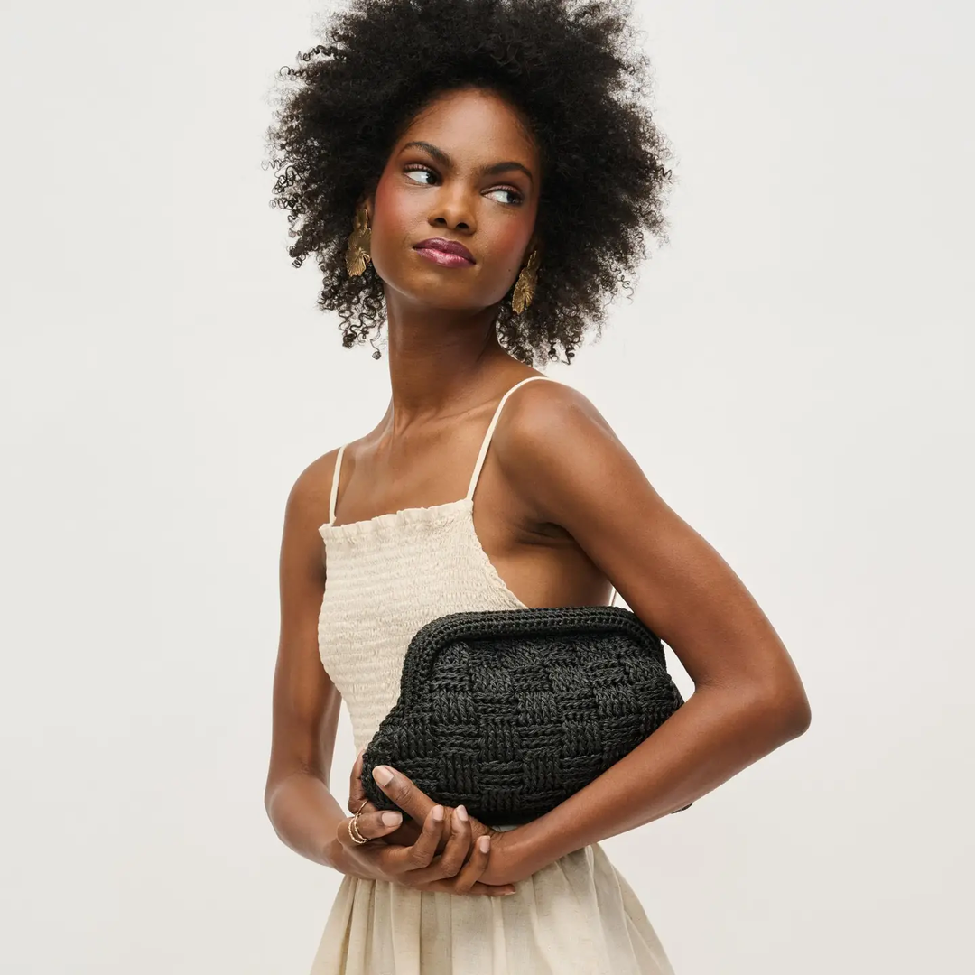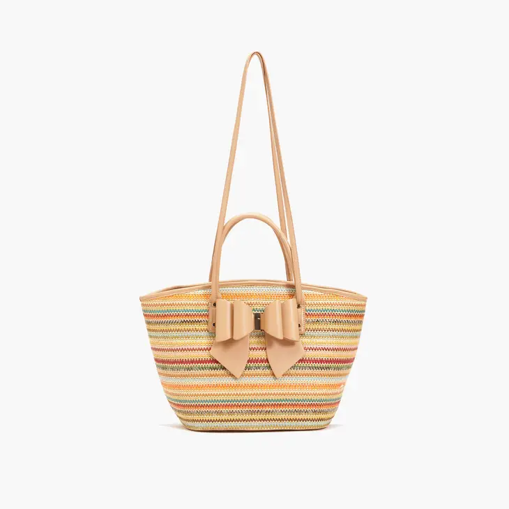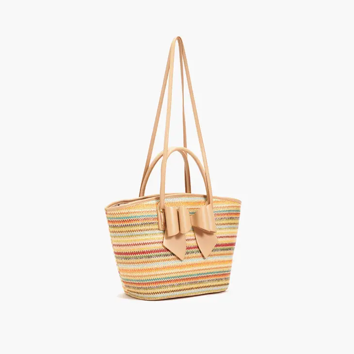 Faux Straw Handmade Metallic Stripe Wooden Handle Bag