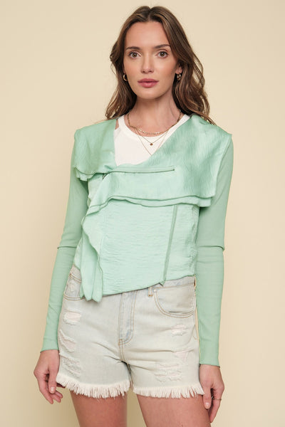 Pu + Sherpa Combo Bolero Moto Jacket