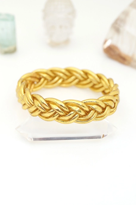 Radiant and glowing, these braided bracelets are temple bracelets from Thailand. They are filled with the gold flake that is used on the Buddhas outside temples. Just like the Buddhas, these might change color over time with wear.