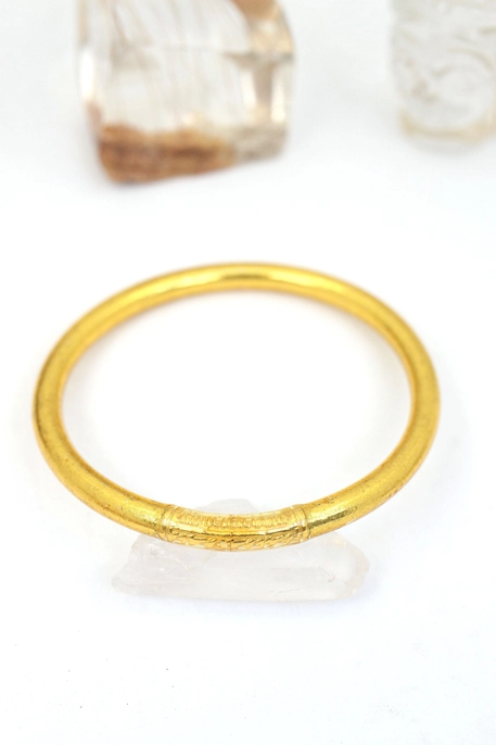 • Each bangle is sealed with a metal mantra tube; one side is for luck, the other for love.