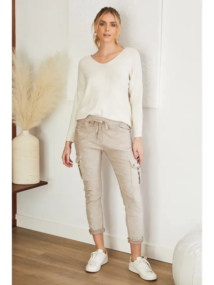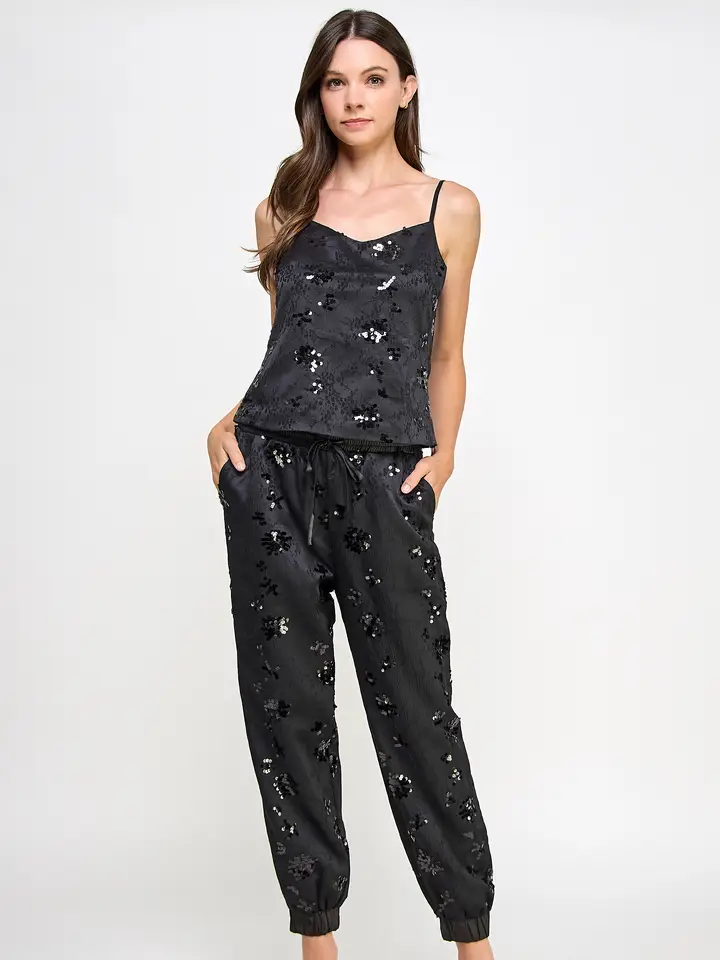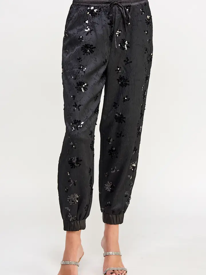 Rhinestone Maze Side Stripe Denim Crinkle Jogger
