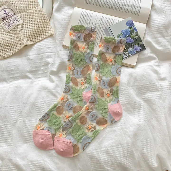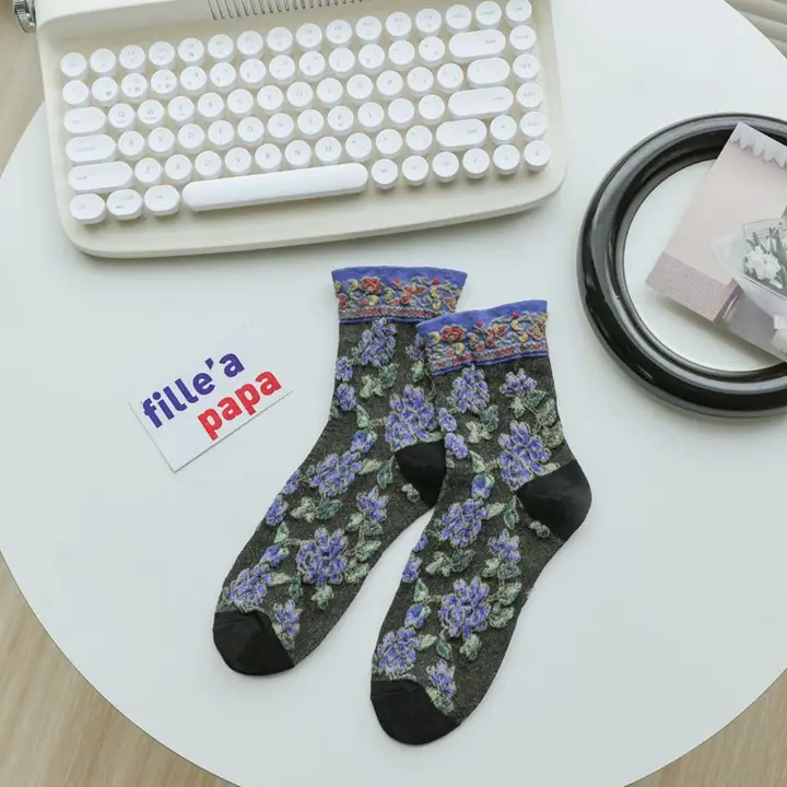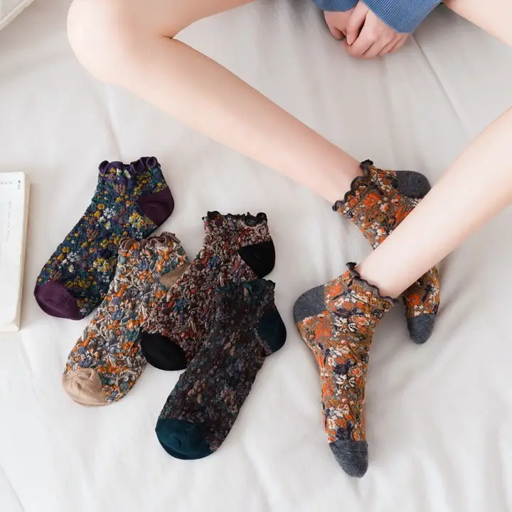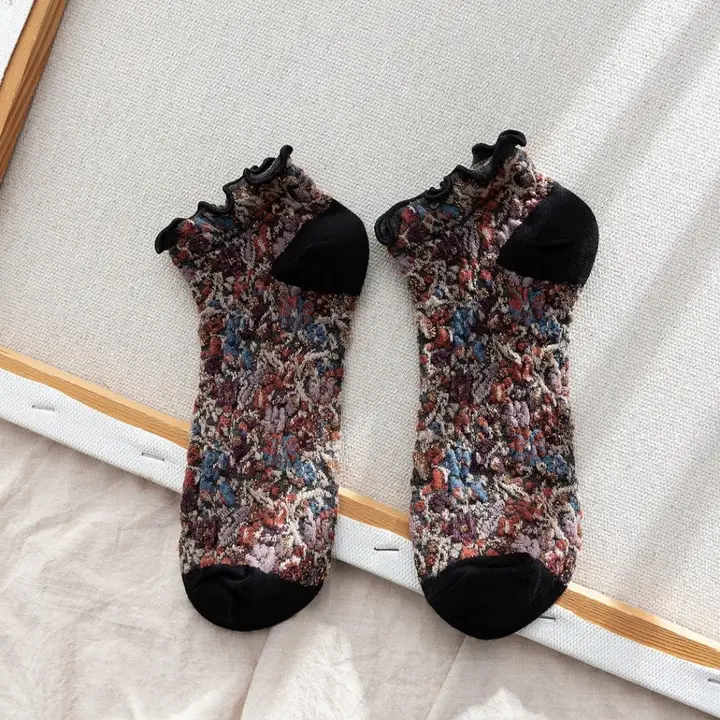Rufia- Summer Floral Print Lace Trim Low-Cut Socks