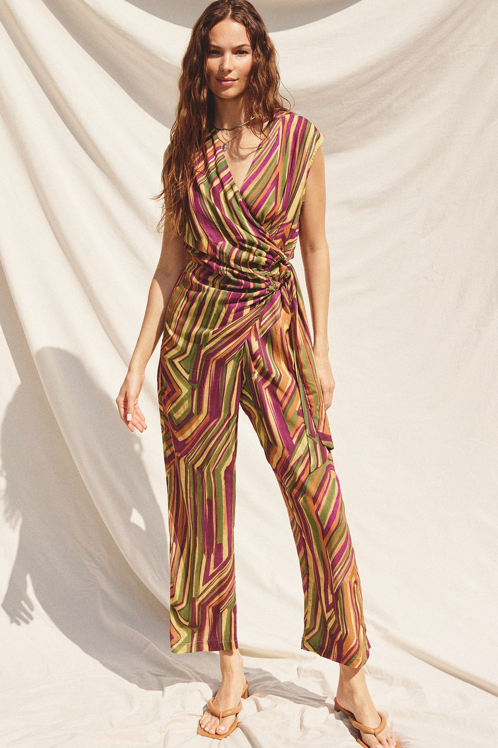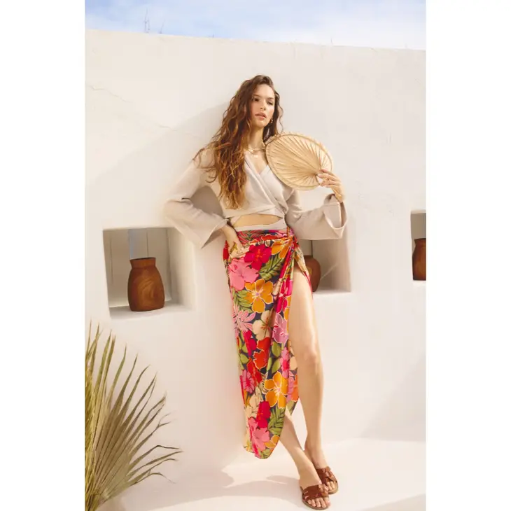 Tessa Ruffled Tie Front Blouse (Available in Lime/Green Print Only)