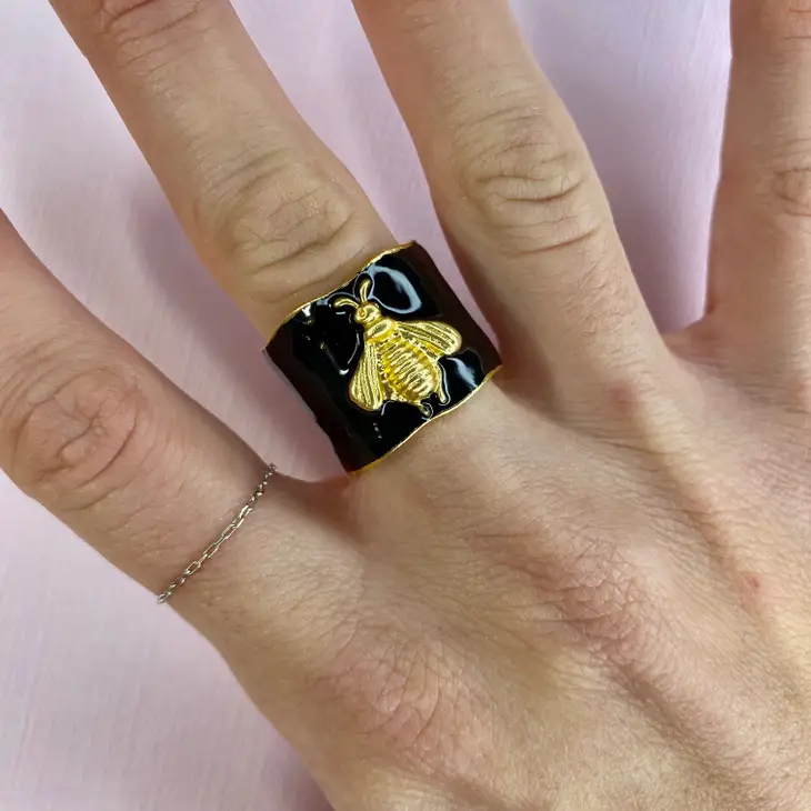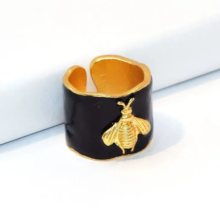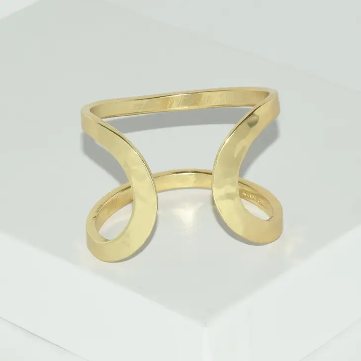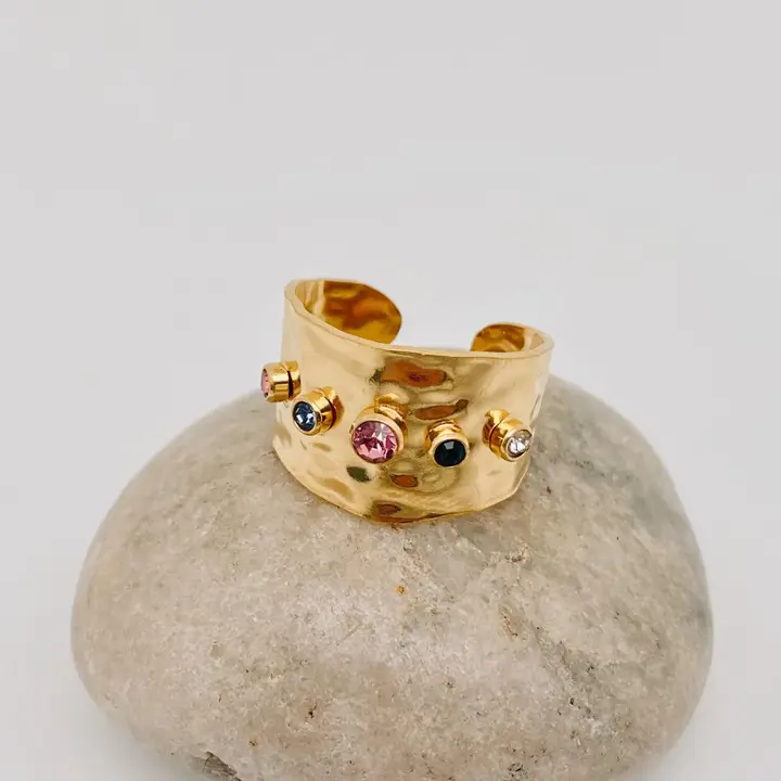Colored Zircon Stainless Steel 18K Gold Plated Wide Ring