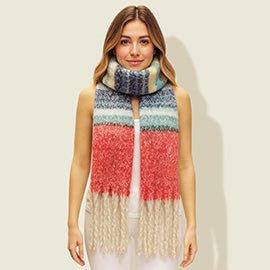 Soft Fuzzy Oversized Striped Fringe Scarf