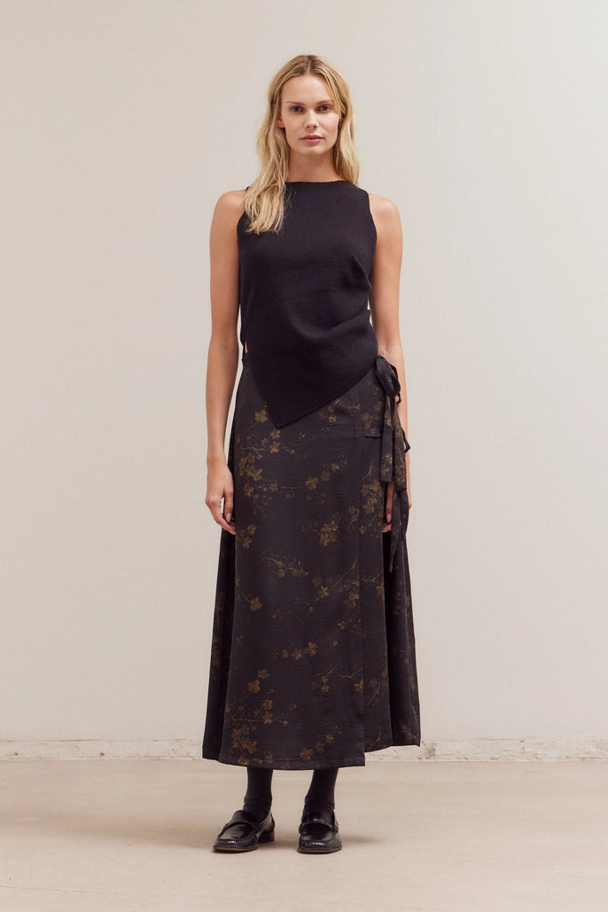 This refined sleeveless knit top showcases an elegant asymmetrical shirring detail along the side, creating a distinctive silhouette with understated sophistication. Crafted from quality knit fabric, it delivers both comfort and polish for any occasion. The sleeveless cut offers versatility for layering or standalone wear, while the thoughtfully placed shirring adds dimension and flatters the figure. An understated yet impactful piece that embodies modern elegance and timeless style.