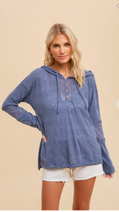 Carla Hooded Woven Peace Emblem Top