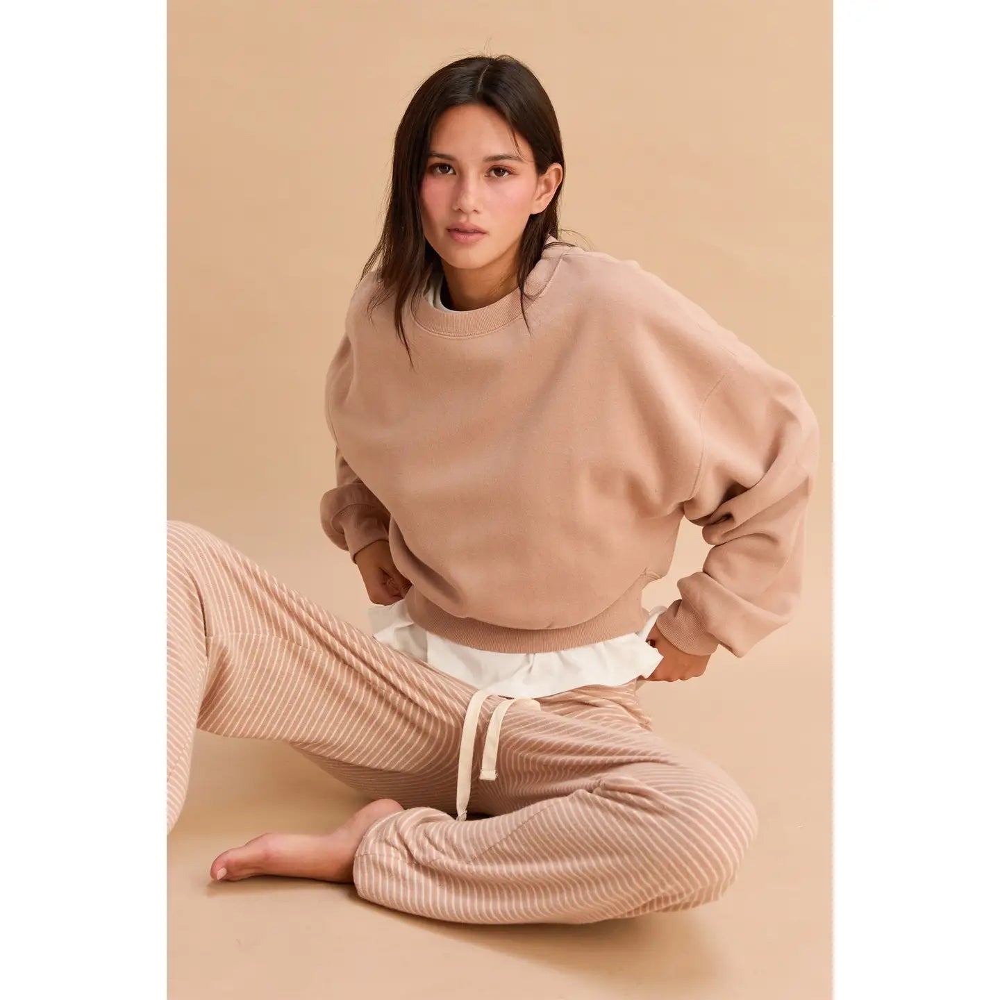 This sweatshirt paired with some jeans makes a cute fall outfit. The pullover style bodice comes with a crew neckline, long sleeves and drop shoulders. The relaxed silhouette ends in a banded hem, making it perfect to throw on when you are on the go.