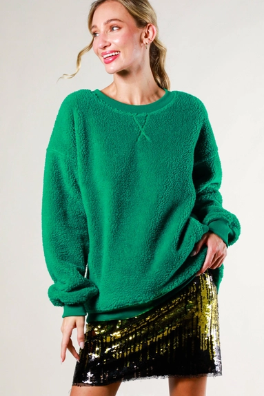 Elevate your wardrobe with our Green Teddy Sweatshirt, a perfect blend of comfort and style. The luxurious crew neck and long sleeves exude sophistication, while the intricate pocket detail adds a touch of exclusivity. Perfect for any occasion, this knit sweater is a must-have for anyone seeking elegance and comfort.