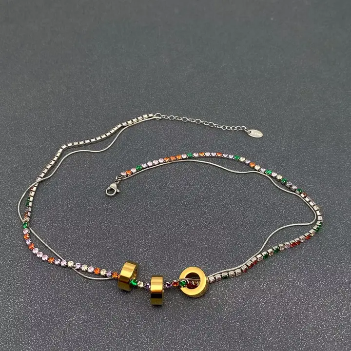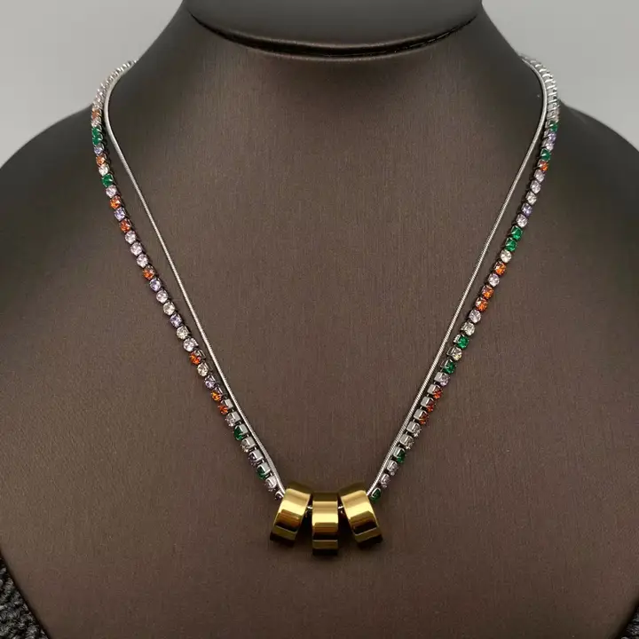 Satisfy your desire for luxury with our dazzling 18K Gold 3 Circle Charm Full Colored CZ Chain Necklace. Elevate your style with this exquisite piece and make a statement that is as confident and radiant as you are!