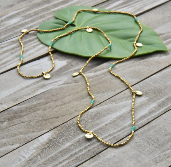 Beaded necklace with swirl detail. Handmade by a young designer and team of artists in Northern India.
