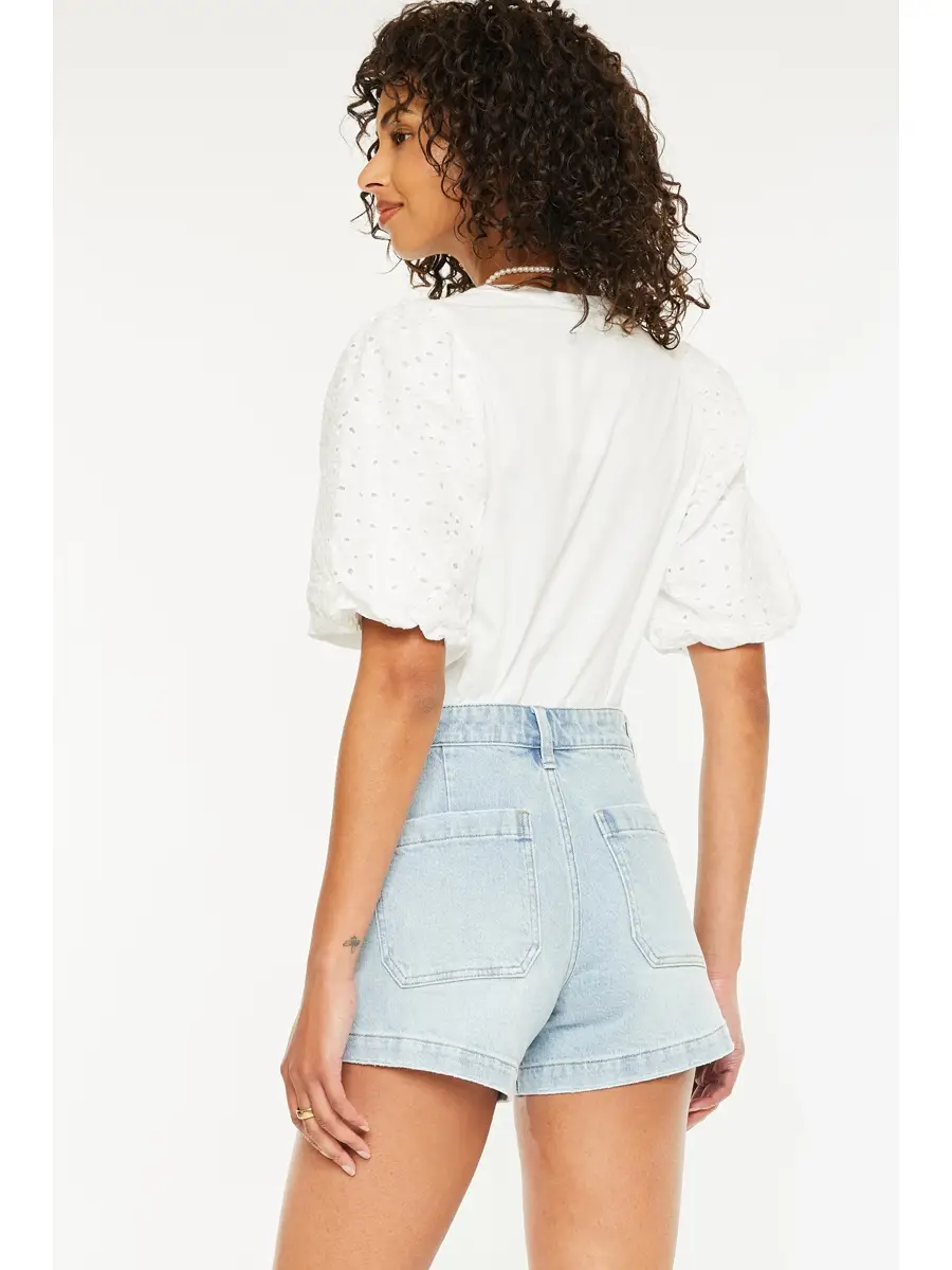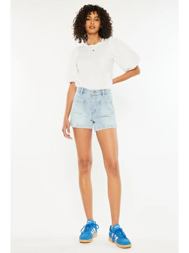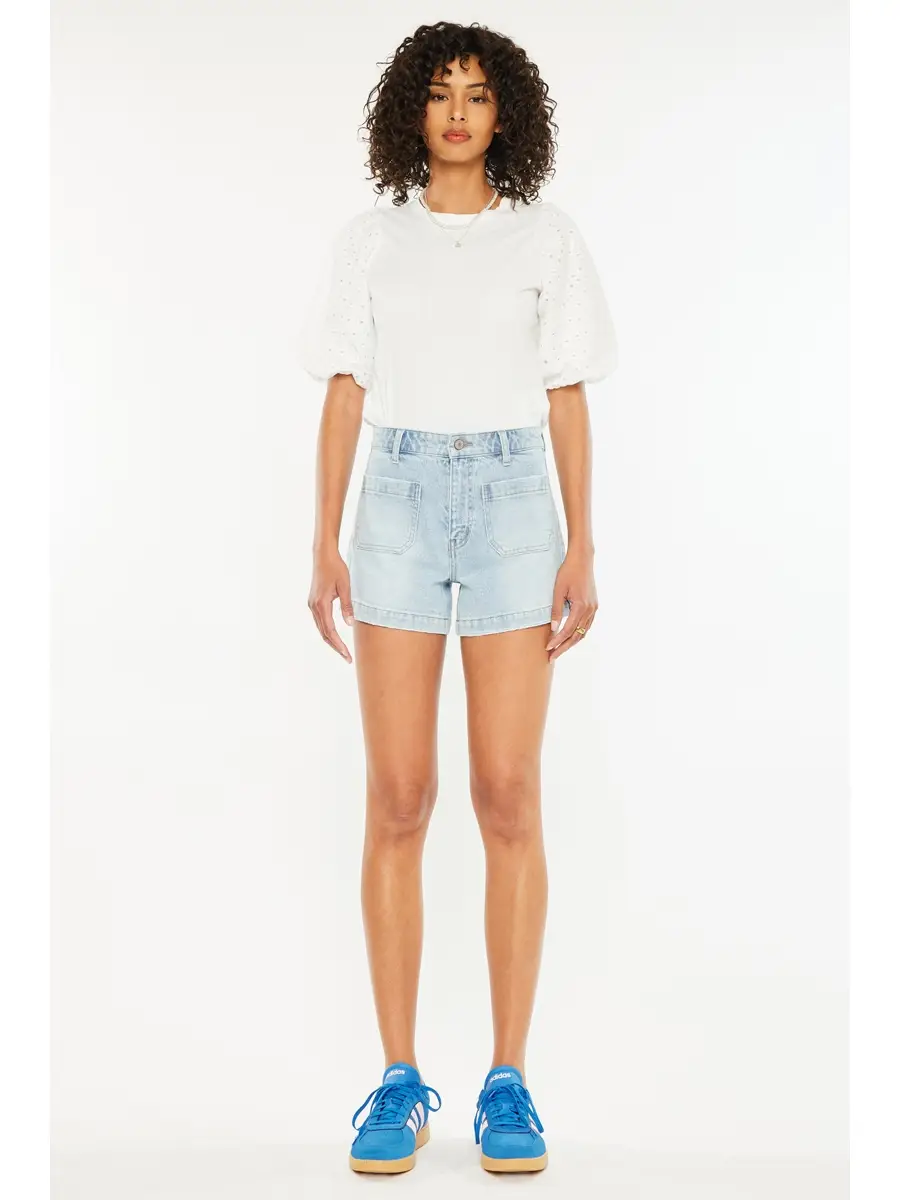 Elevate your style with our High Rise A-Line Trouser Denim Shorts. Made to flatter your figure and elongate your legs, these shorts are a must-have for any fashion-forward individual. Stay on-trend and comfortable all summer long in these versatile and trendy denim shorts.