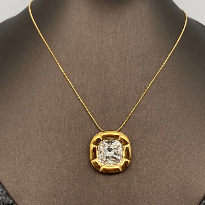 Experience the luxurious beauty of our Large Zircon 18K Gold Plated Stainless Steel Necklace. This exquisite piece will elevate any outfit with its stunning design and high-quality materials. Feel confident and stylish while wearing this must-have accessory.