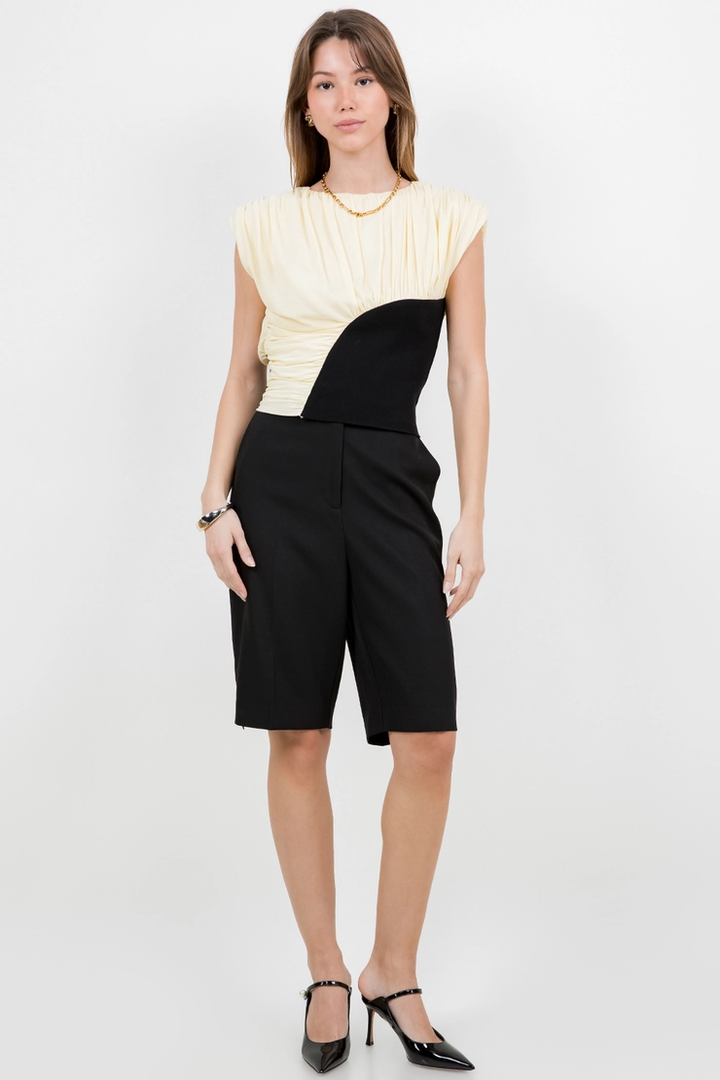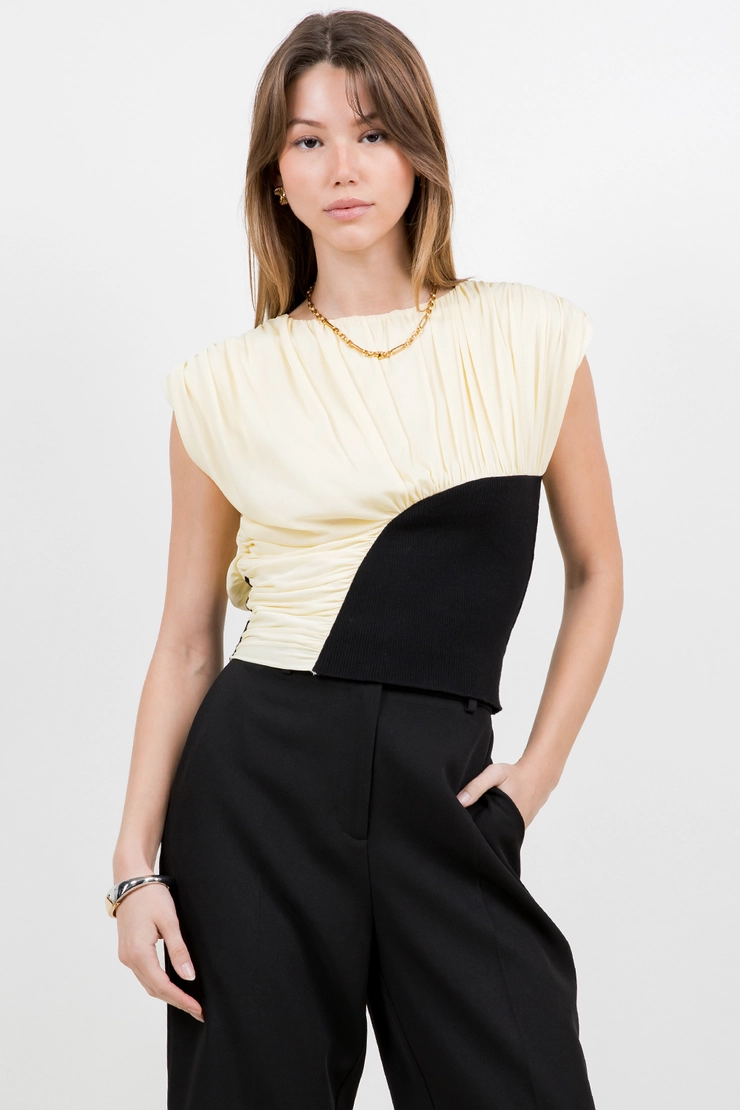 Power Mesh+Knitted Combo Top with Shoulder Pads
