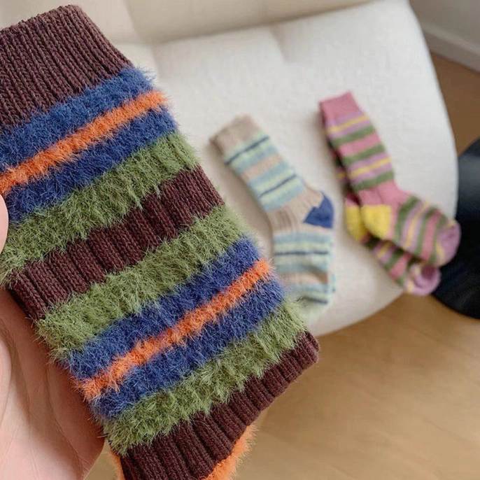 Stay warm and stylish this winter with our thick striped winter warm socks, available in vibrant colors. Eye-catching stripe design: The bold stripes add a playful touch to your winter wardrobe. Superior warmth: Crafted with thick materials for excellent insulation against cold weather. Soft and Comfortable: designed for a cozy fit, these socks ensure comfort during all your winter activities.
