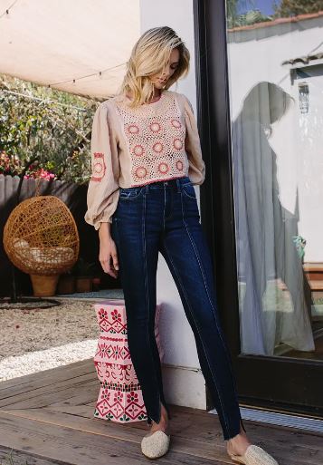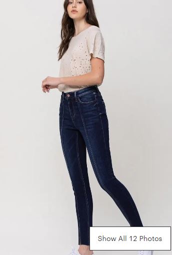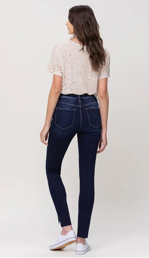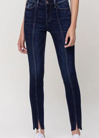 Perfect for any occasion, these jeans will hug your curves in all the right places and make you feel confident and fashionable. Elevate your wardrobe and make a statement with our Split Hem High Rise Skinny Jean!